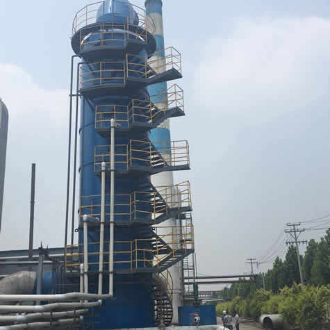 煙氣首先進入增濕塔,增濕塔為玻璃鋼罐結構,內裝鮑爾環填料,煙氣在填料中經過時被高溫水蒸氣增濕加熱后進入吸附塔,吸附塔為碳鋼結構,下部進氣室內襯酚醛型耐高溫環氧乙烯基酯樹脂玻璃鱗片膠泥。中部為活性焦層,活性焦是以煤為原料,成型、焦化、活化生產的多孔狀黑色顆粒,煙氣在活性焦層完成SO2,HF,HCl和二噁英等大分子氧化物以及汞、砷等重金屬的吸附,然后從側煙道排向煙囪。飽和活性焦則輸送至解析塔加熱脫附,獲得體積濃度大于20%的SO2混合氣體,送去制酸。